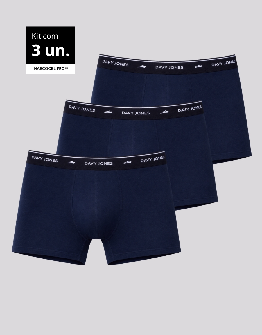 Kit 3 Cuecas Boxer Masculina Naecocel Não Enrola – Cor Azul Marinho