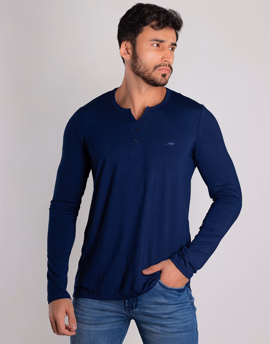 Henley Slim Fit Masculina Alta Elasticidade – Cor Azul Marinho
