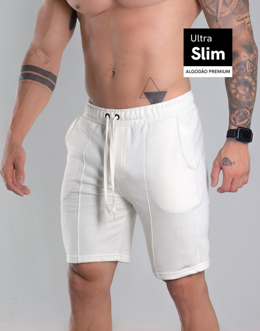 Bermuda Curta Moletom Masculina Recorte Alfaiataria – Cor Off-White