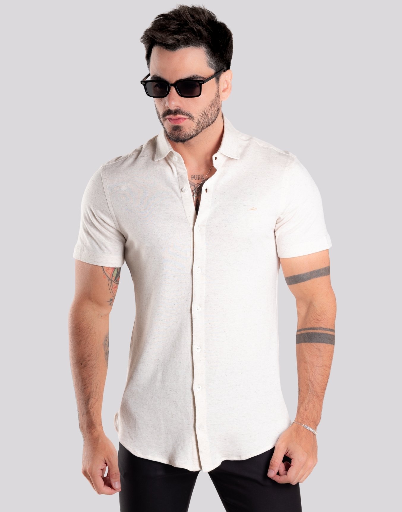 Camisa Slim em Linho com Alta Durabilidade – Off-White