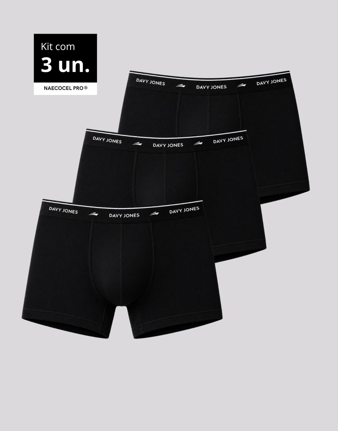 Kit 3 Cuecas Boxer Masculina Naecocel – Cor Preta Não Enrola