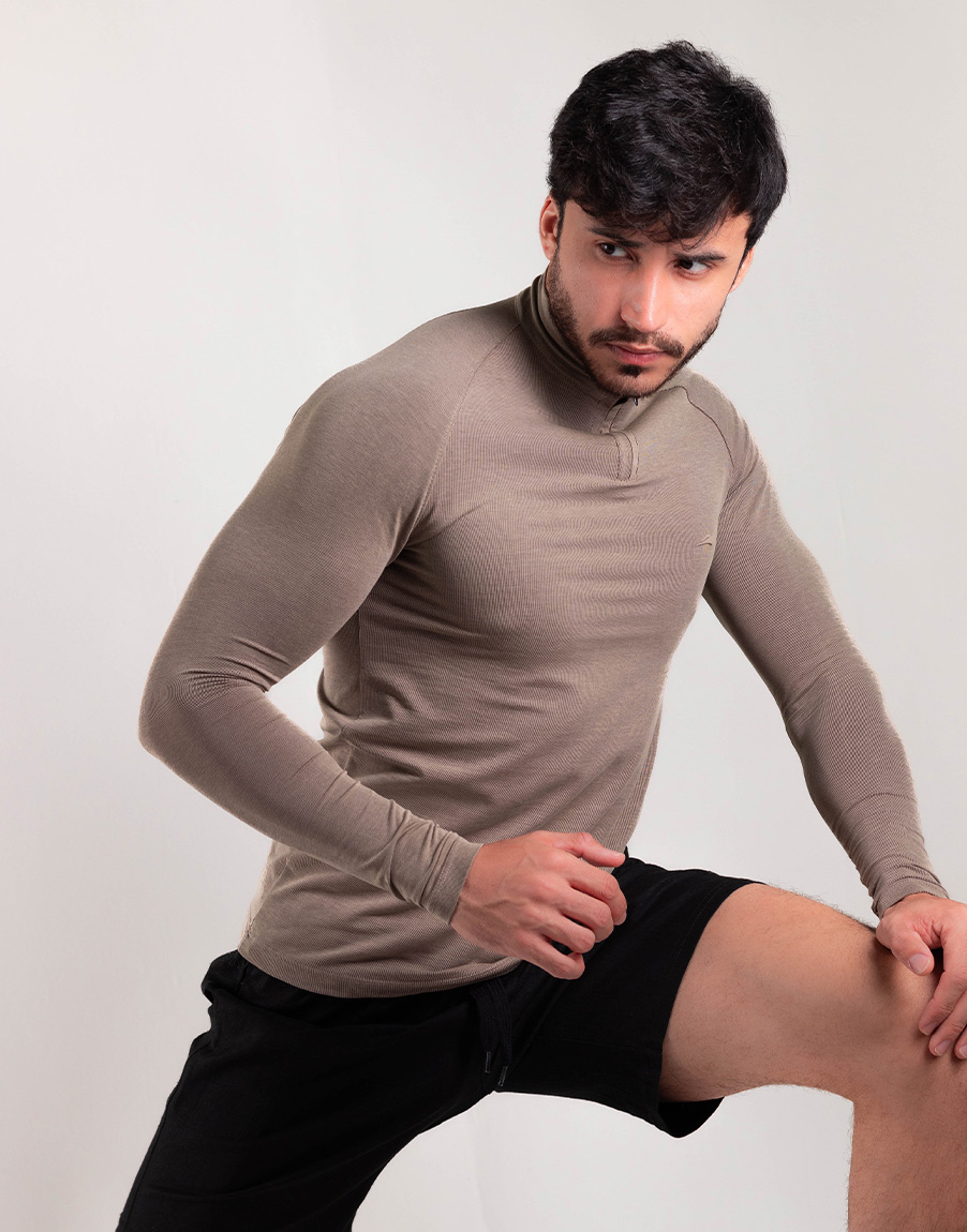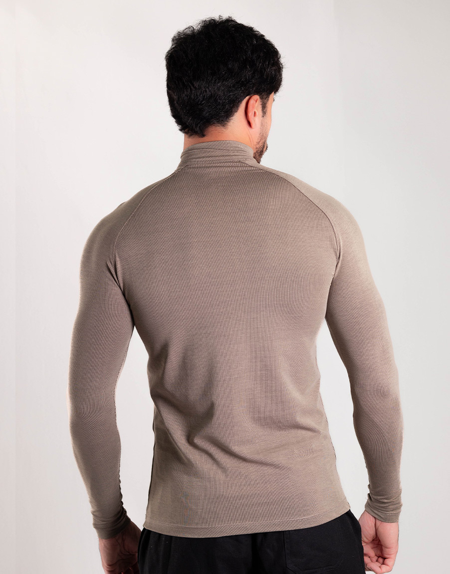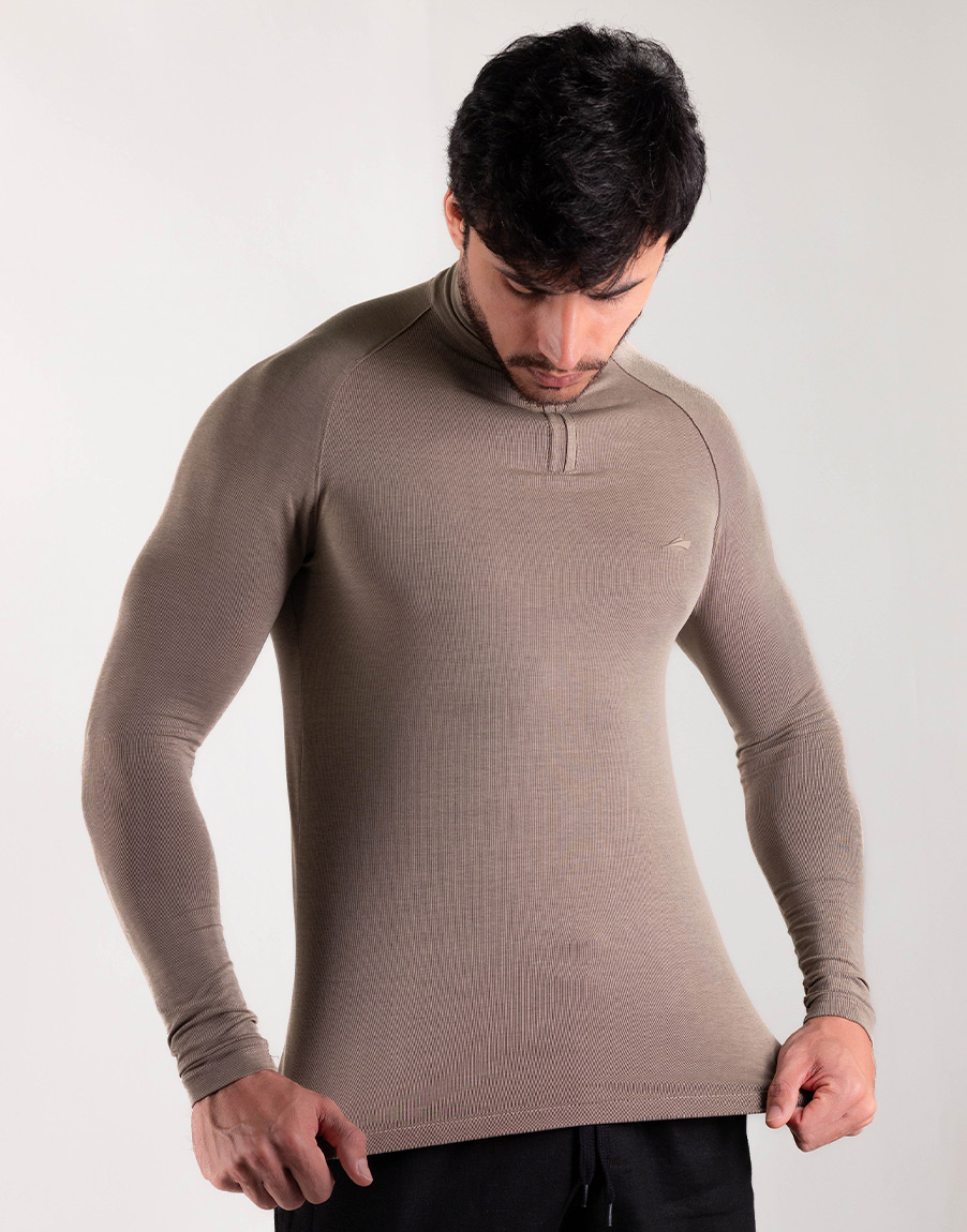 Camiseta Gola Alta Manga Longa com Alta Elasticidade e Conforto Supremo – Cor bege