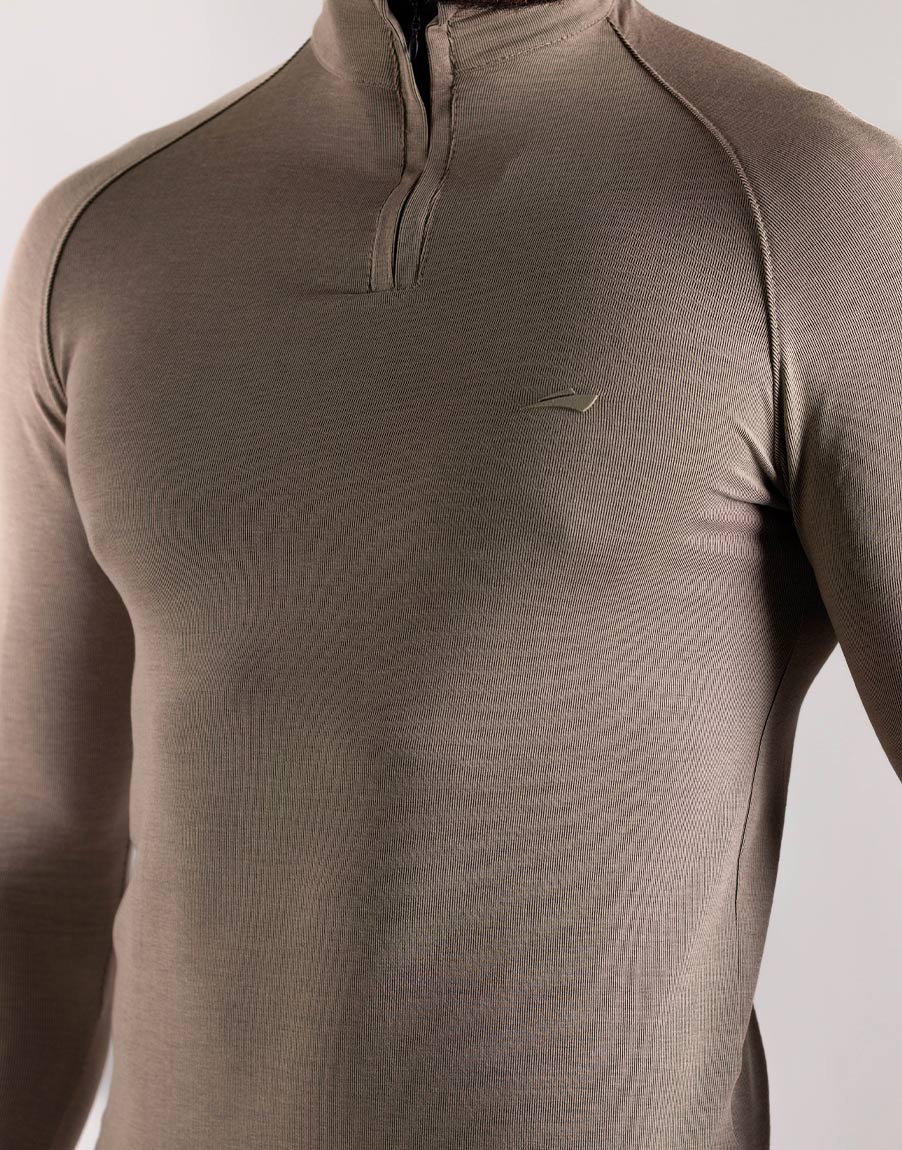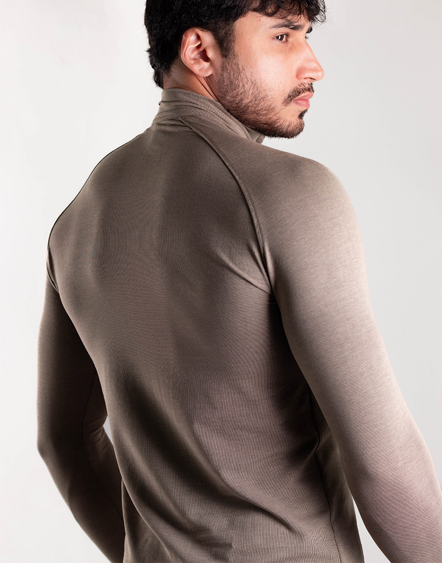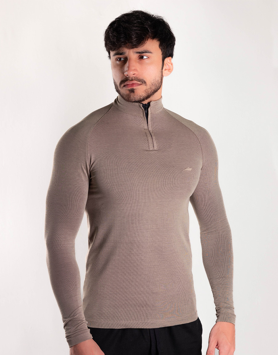 Camiseta Gola Alta Manga Longa com Alta Elasticidade e Conforto Supremo – Cor bege