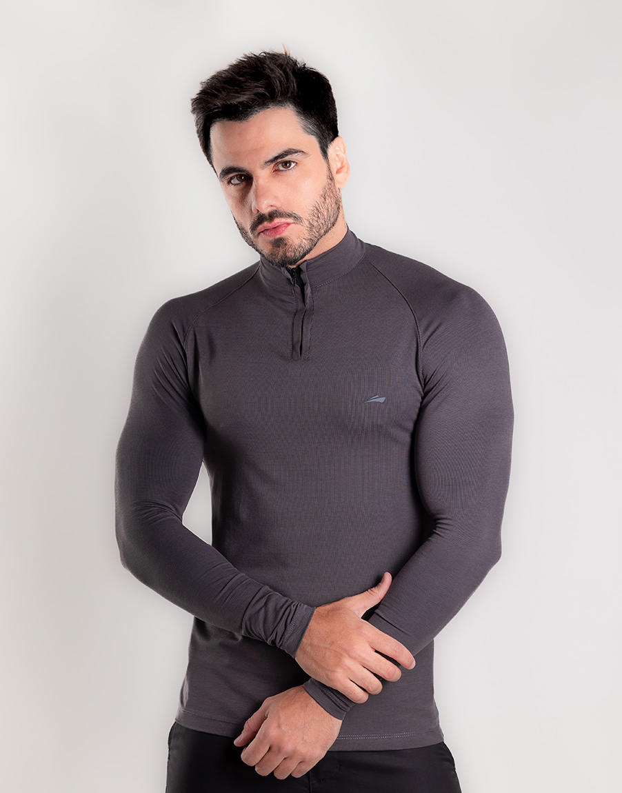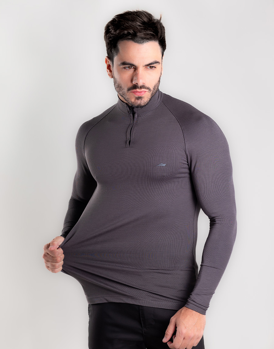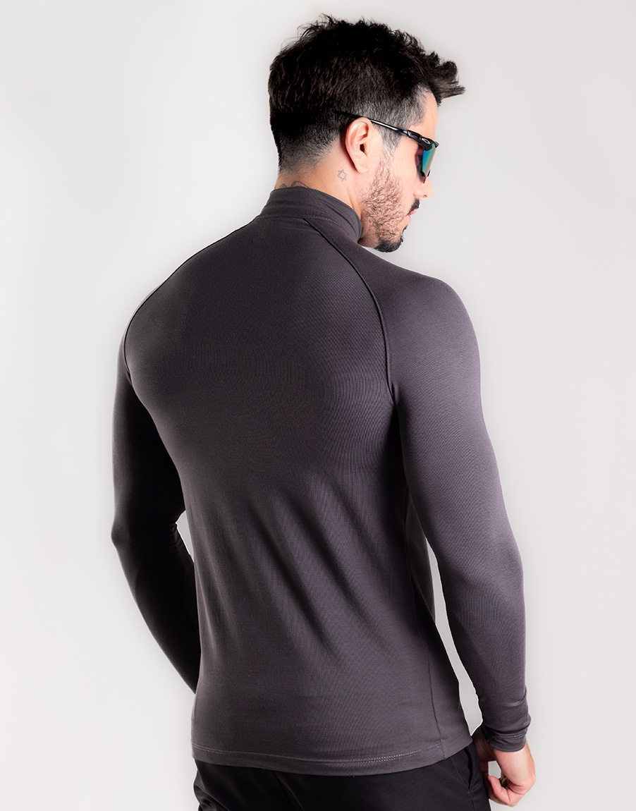 Camiseta Gola Alta Manga Longa com Alta Elasticidade e Conforto Supremo – Cor Cinza