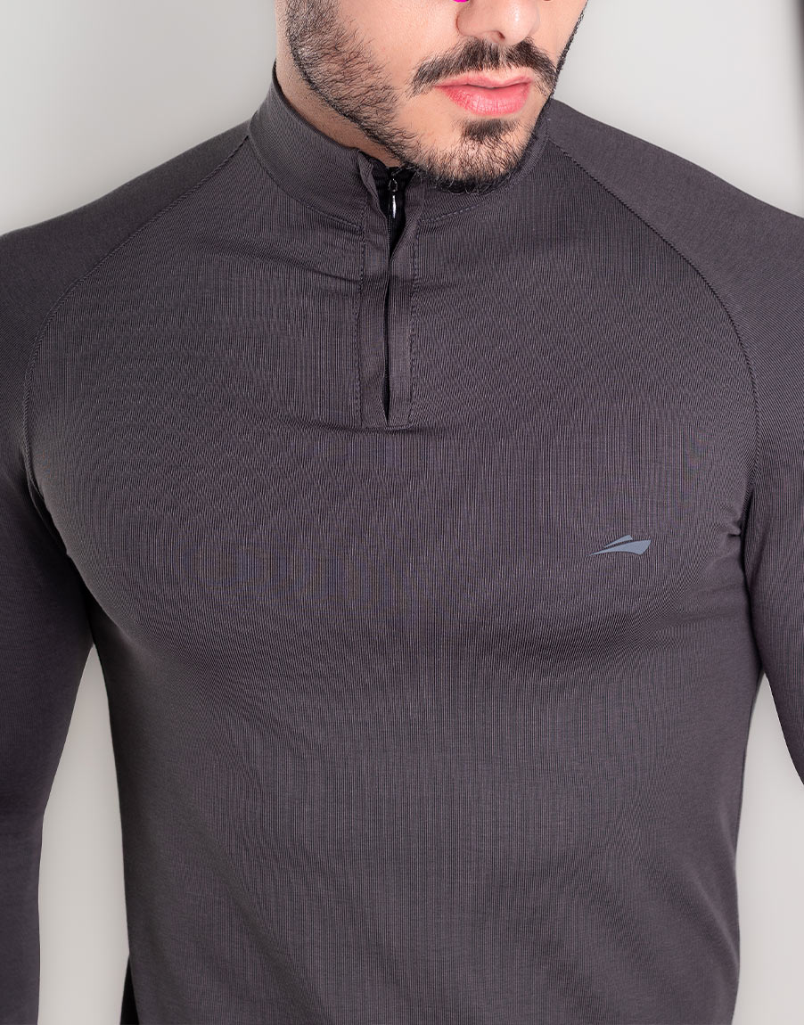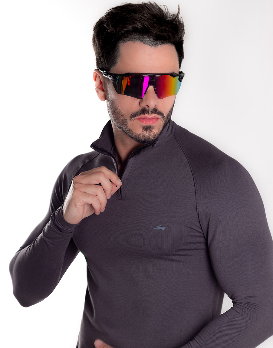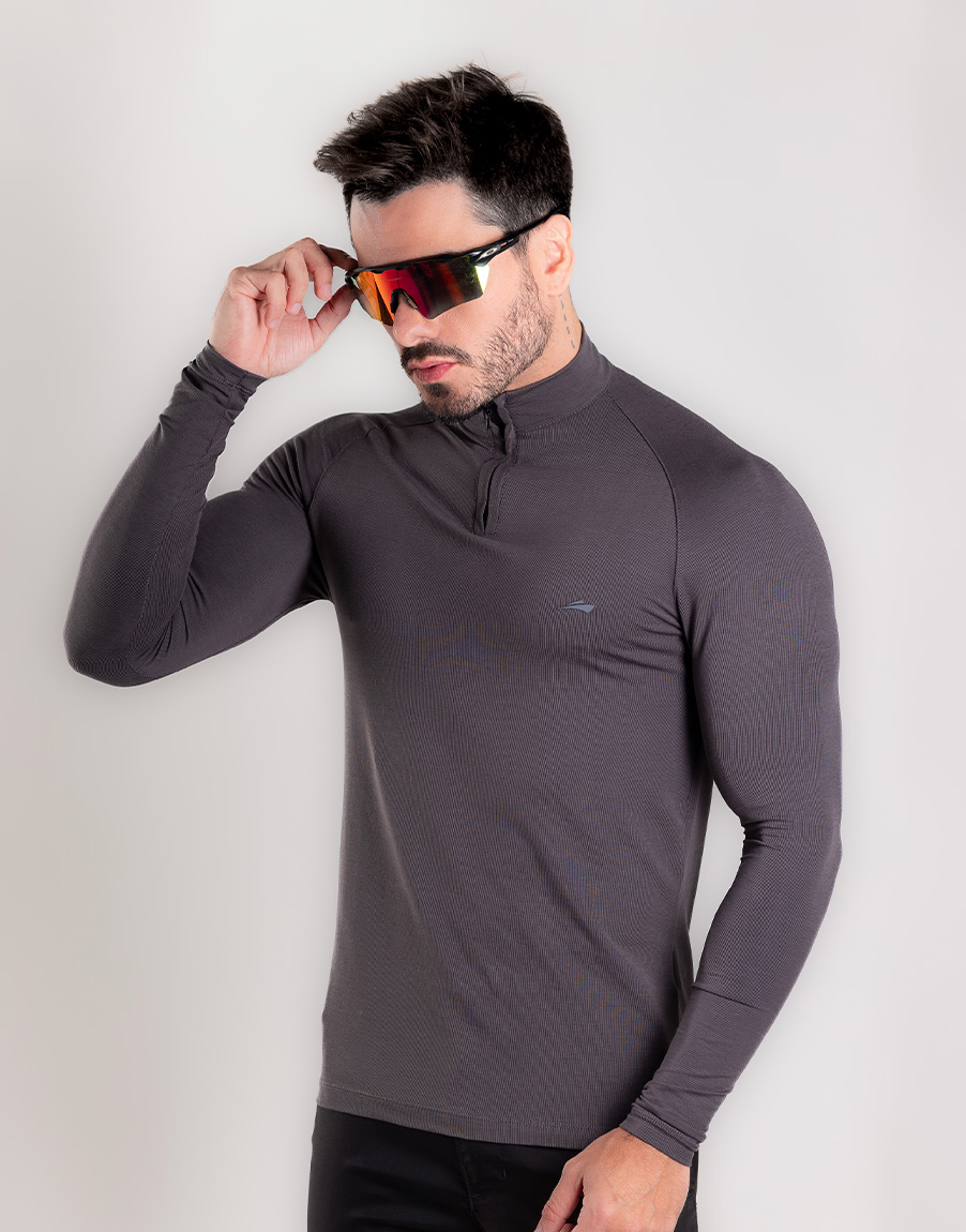 Camiseta Gola Alta Manga Longa com Alta Elasticidade e Conforto Supremo – Cor Cinza