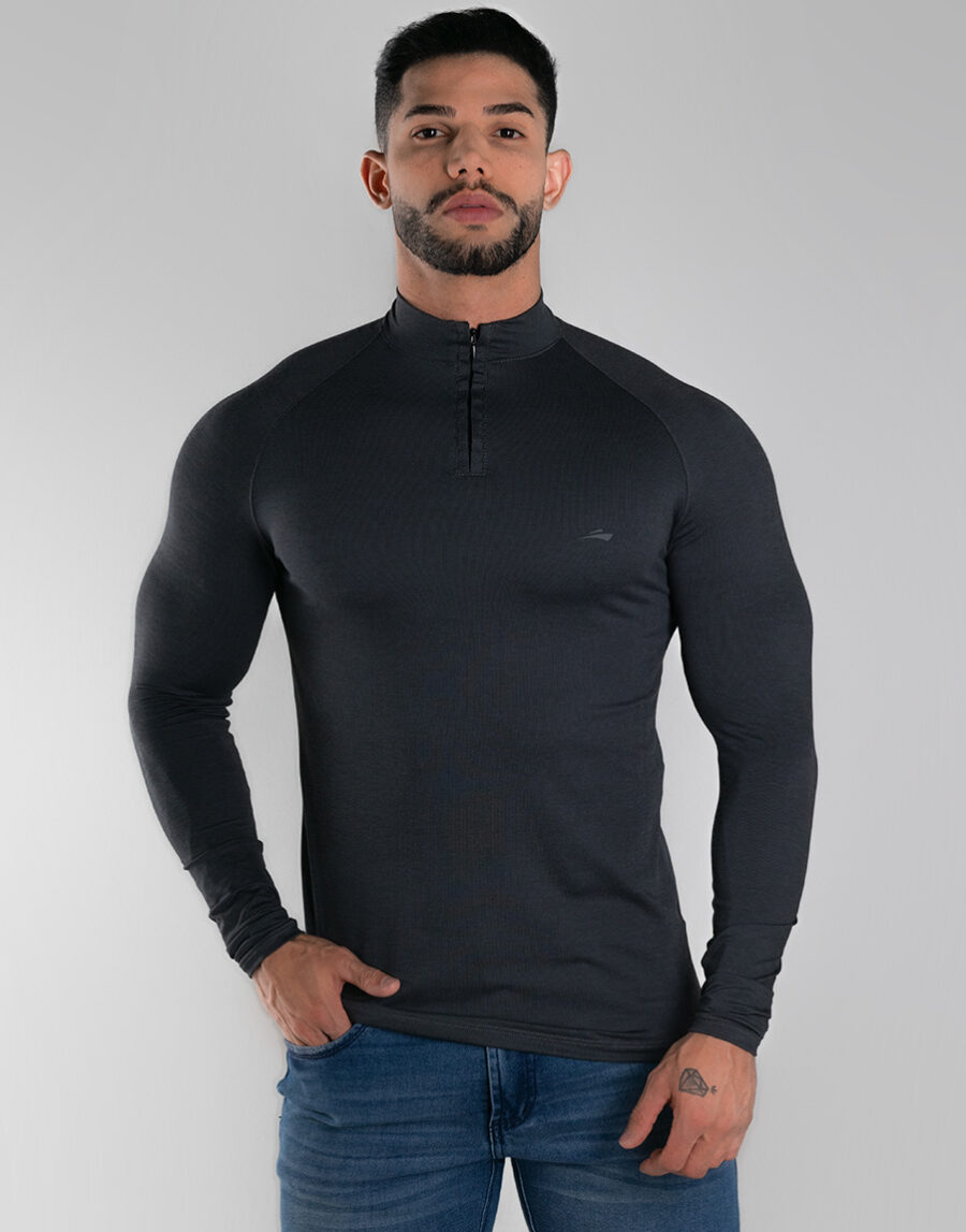 Camiseta Manga Longa Masculina Moletinho Alta Elaticidade e Conforto Térmico – Cor Preta