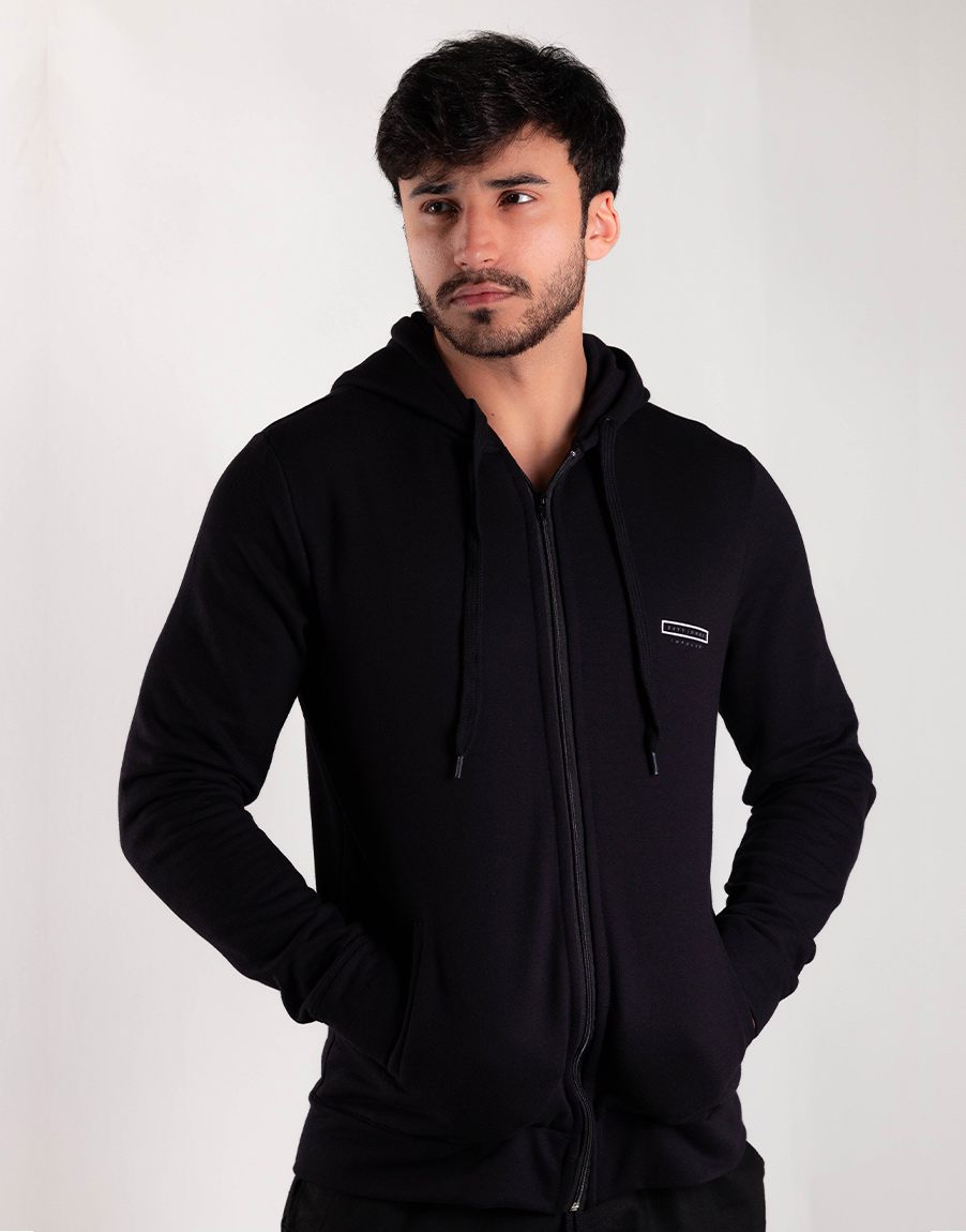 Blusão Moletom com Ziper de Capuz Black – Cor Preto