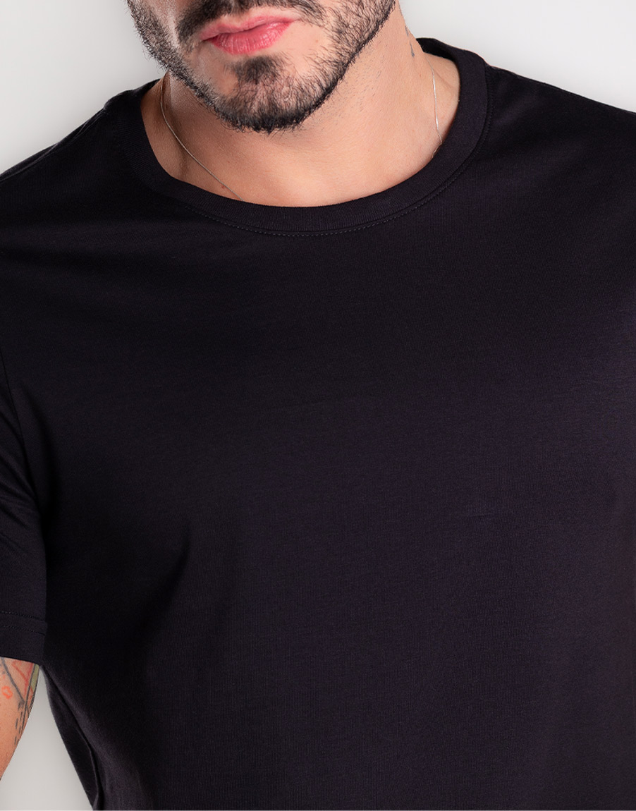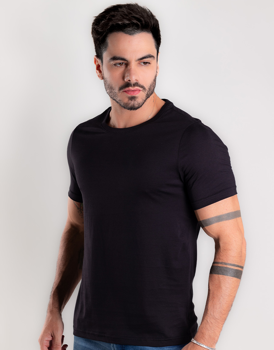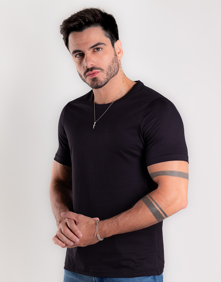 Camiseta Masculina Gola O Poá Elastano Confortável – Cor Preto