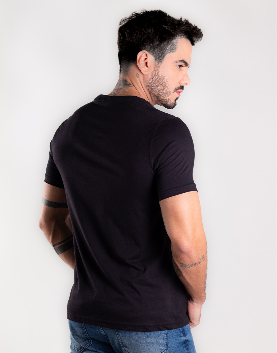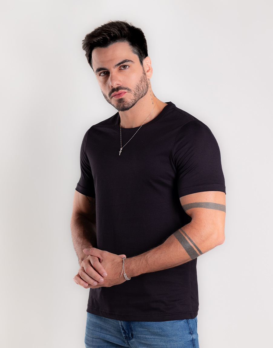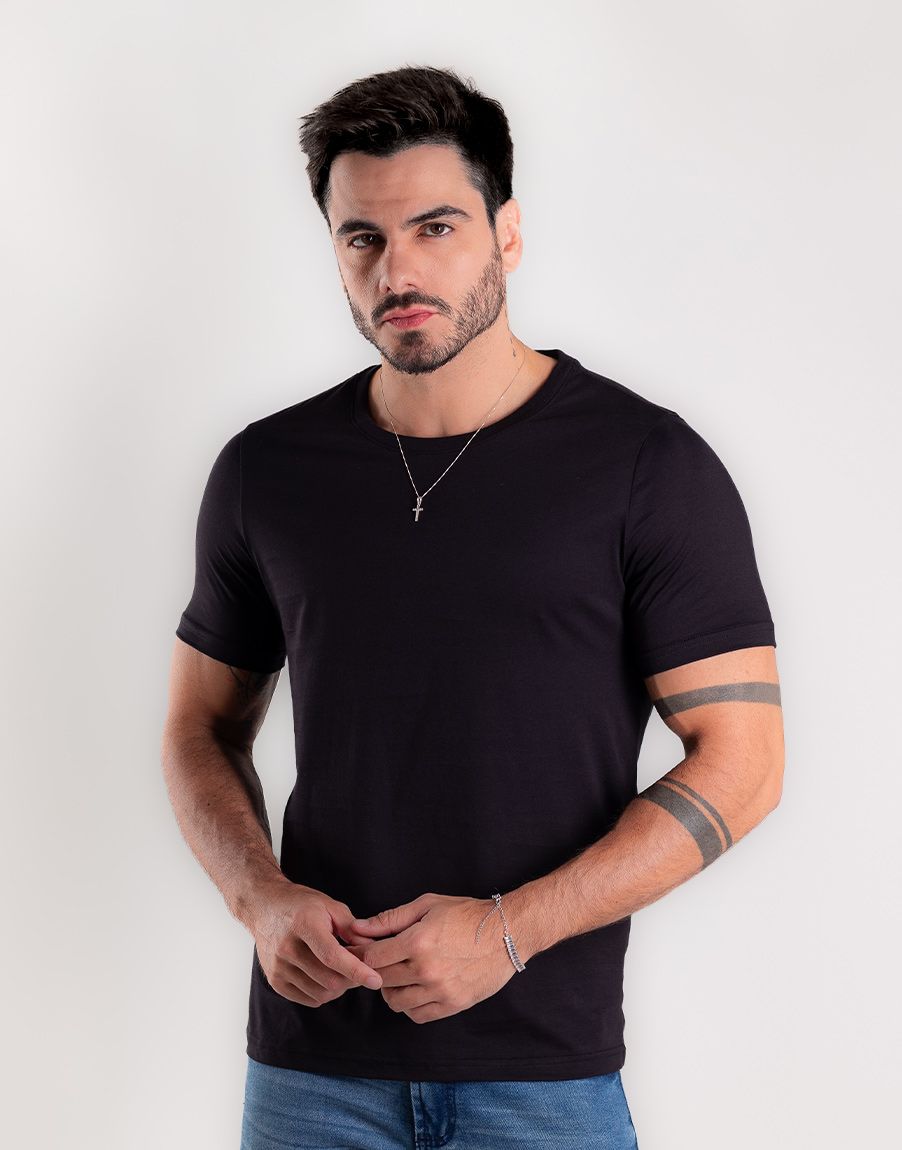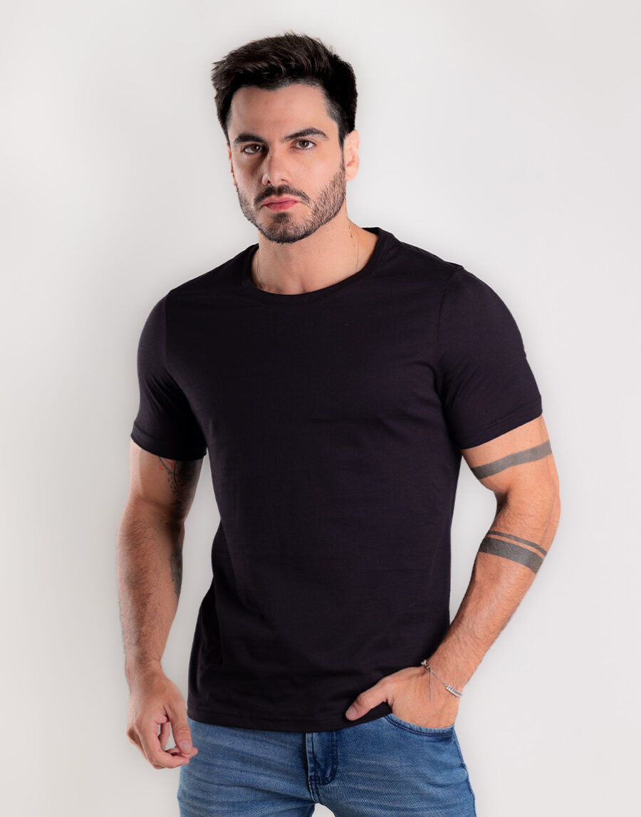Camiseta Masculina Gola O Poá Elastano Confortável – Cor Preto