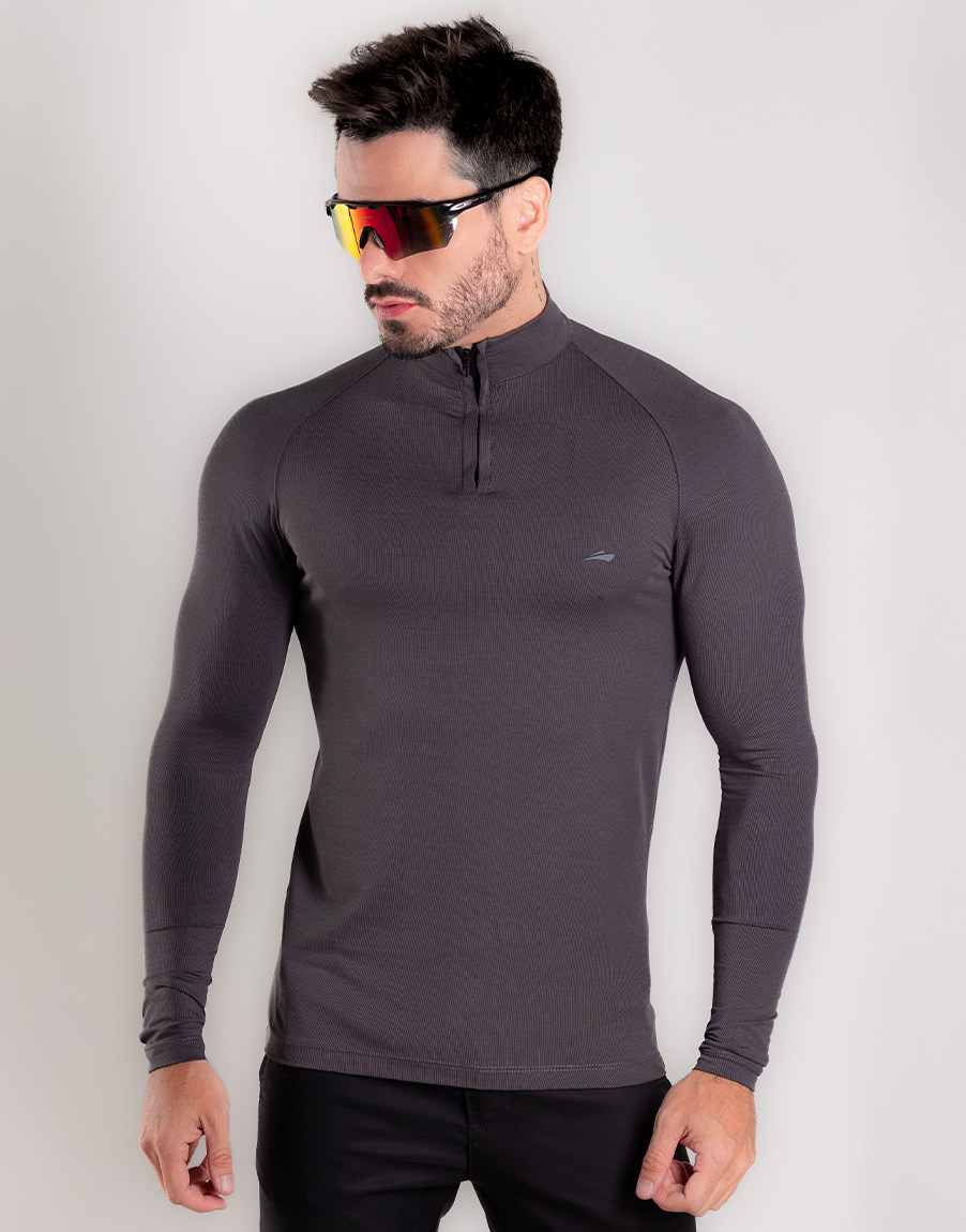 Camiseta Gola Alta Manga Longa com Alta Elasticidade e Conforto Supremo – Cor Cinza
