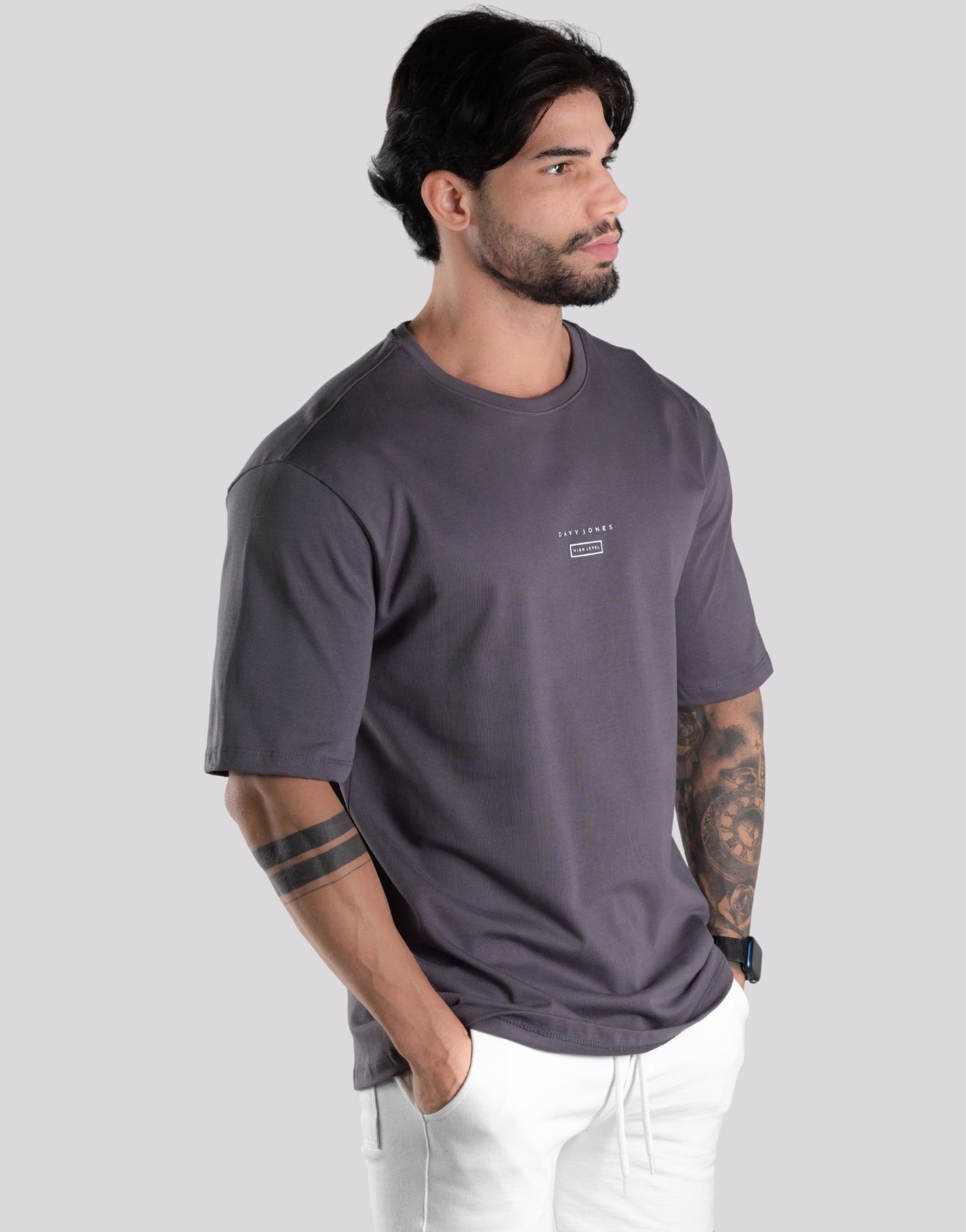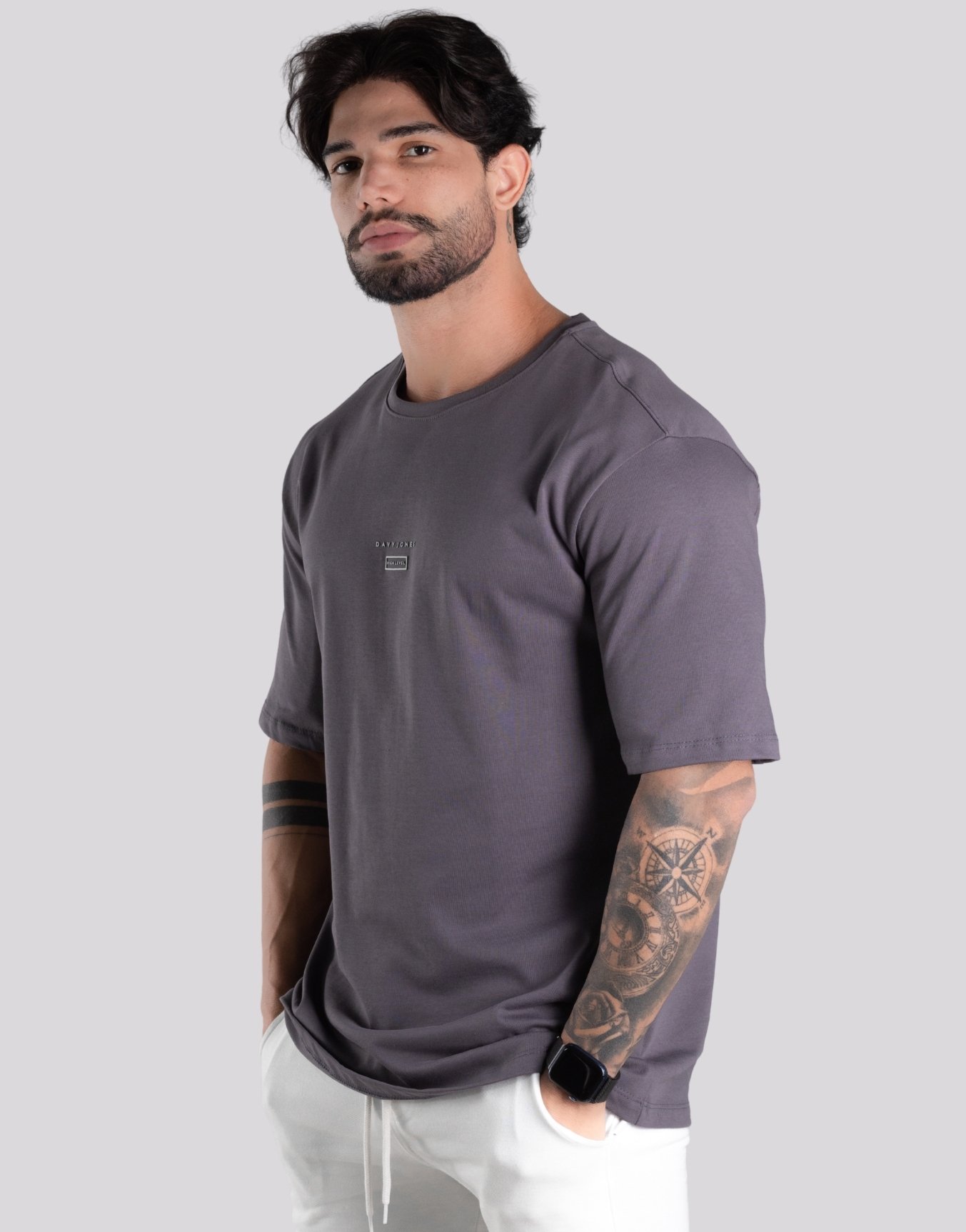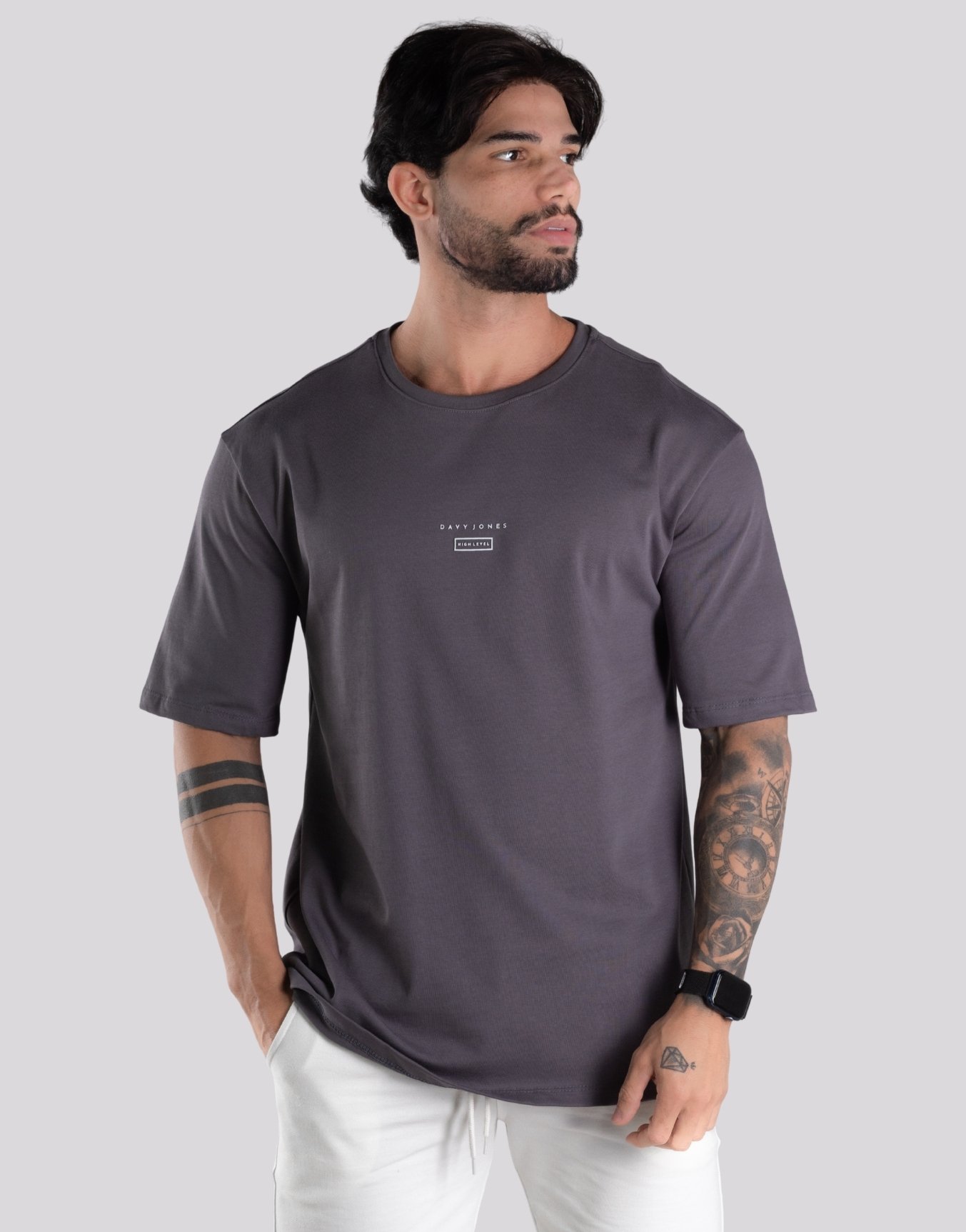 Camiseta Oversized Masculina em Malha Estruturada – Cor Cinza