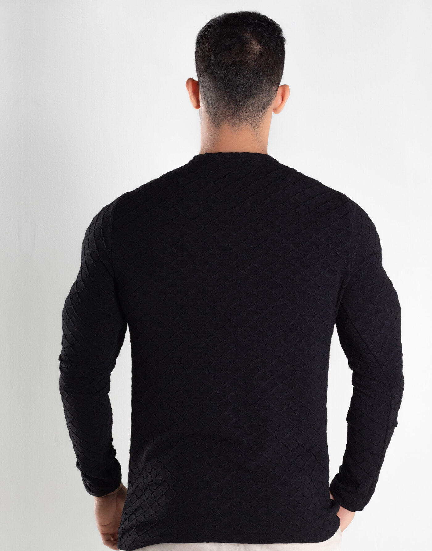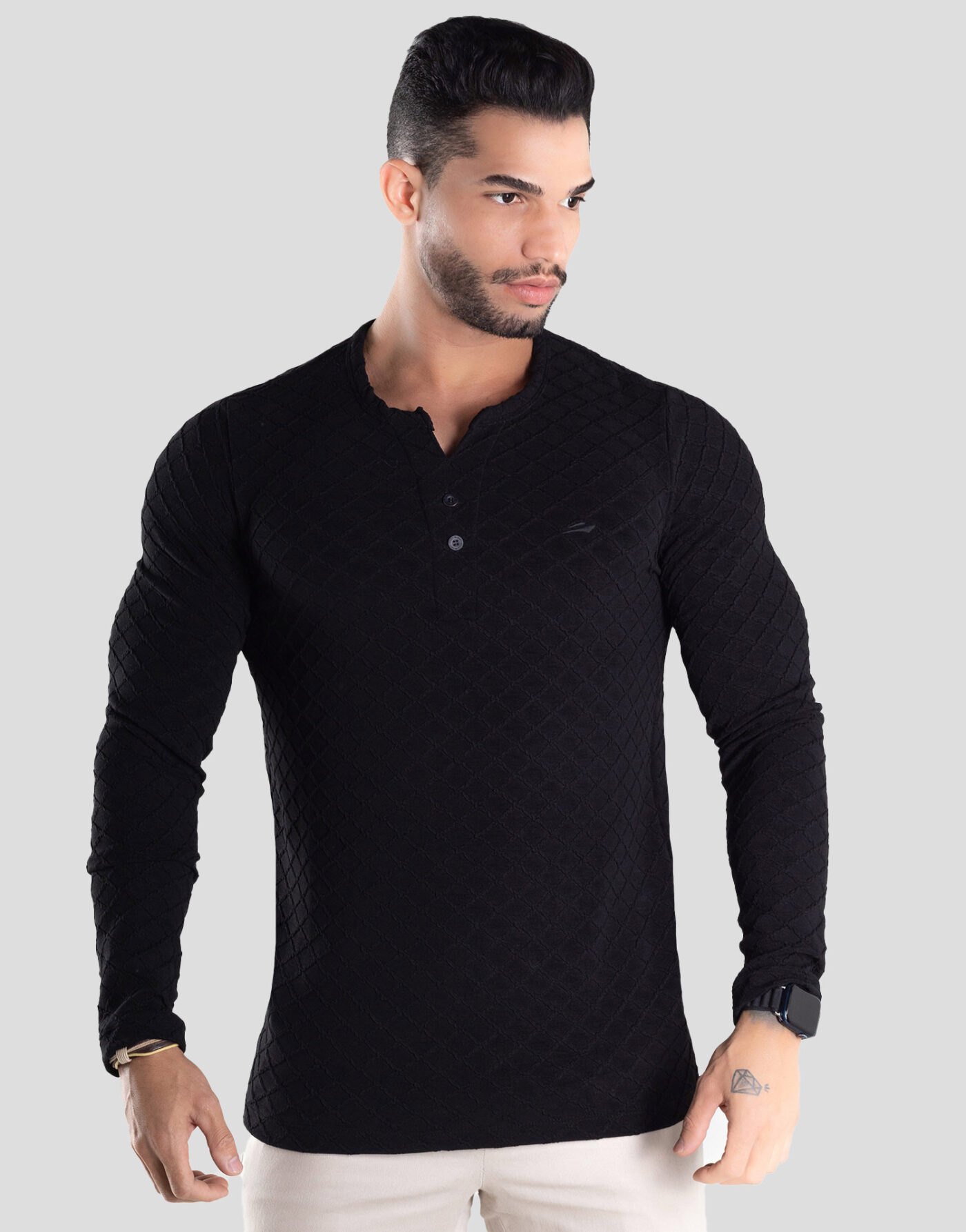 Henley com Textura Manga Longa Masculina – Cor Preta