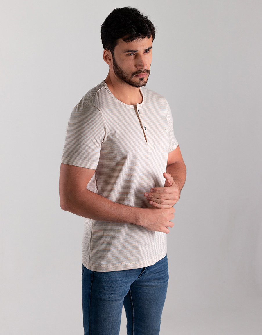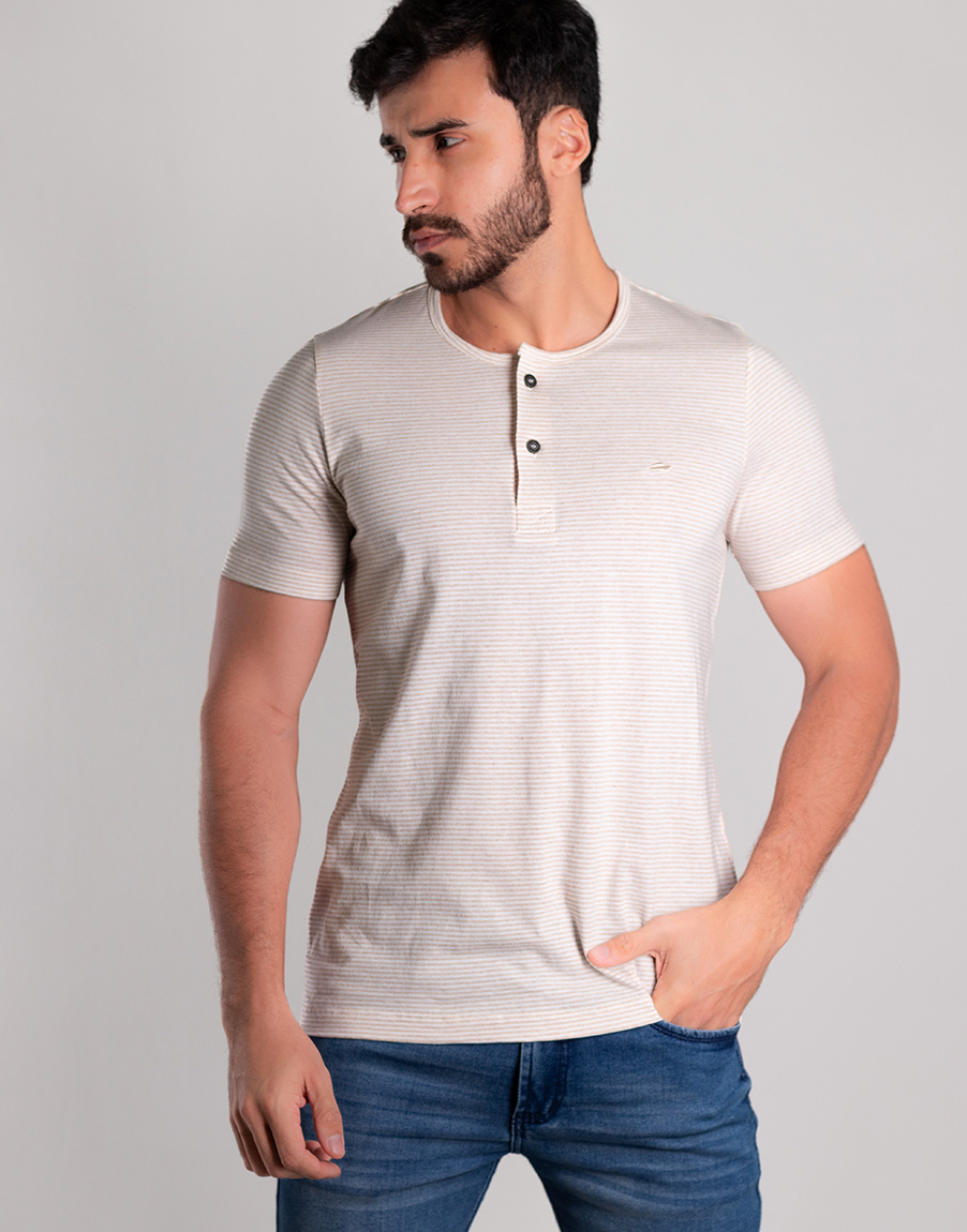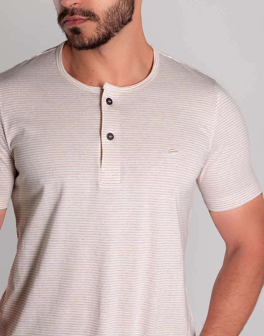 Henley Masculina Modelagem Slim com Listra – Cor Off-White