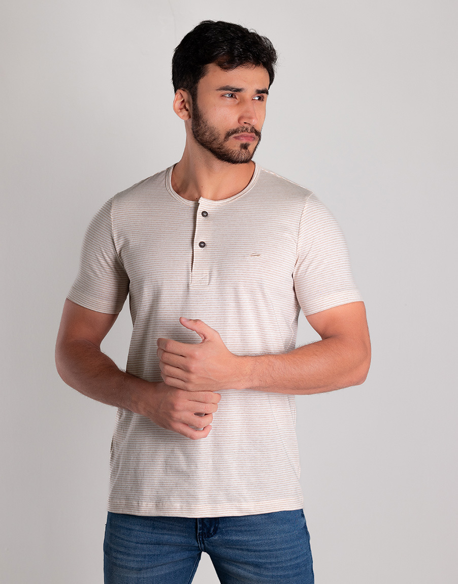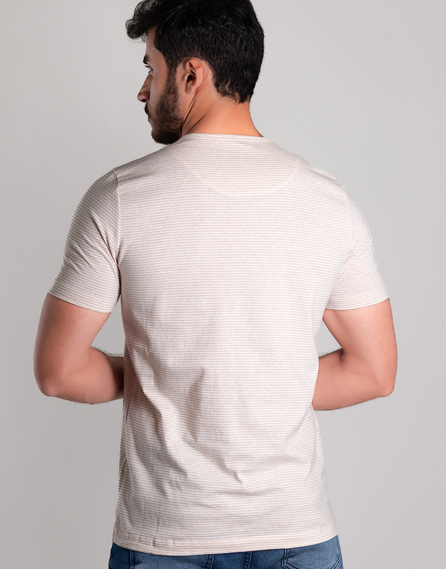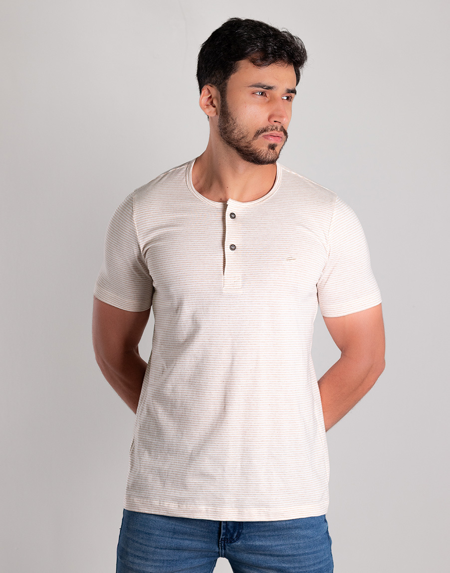 Henley Masculina Modelagem Slim com Listra – Cor Off-White