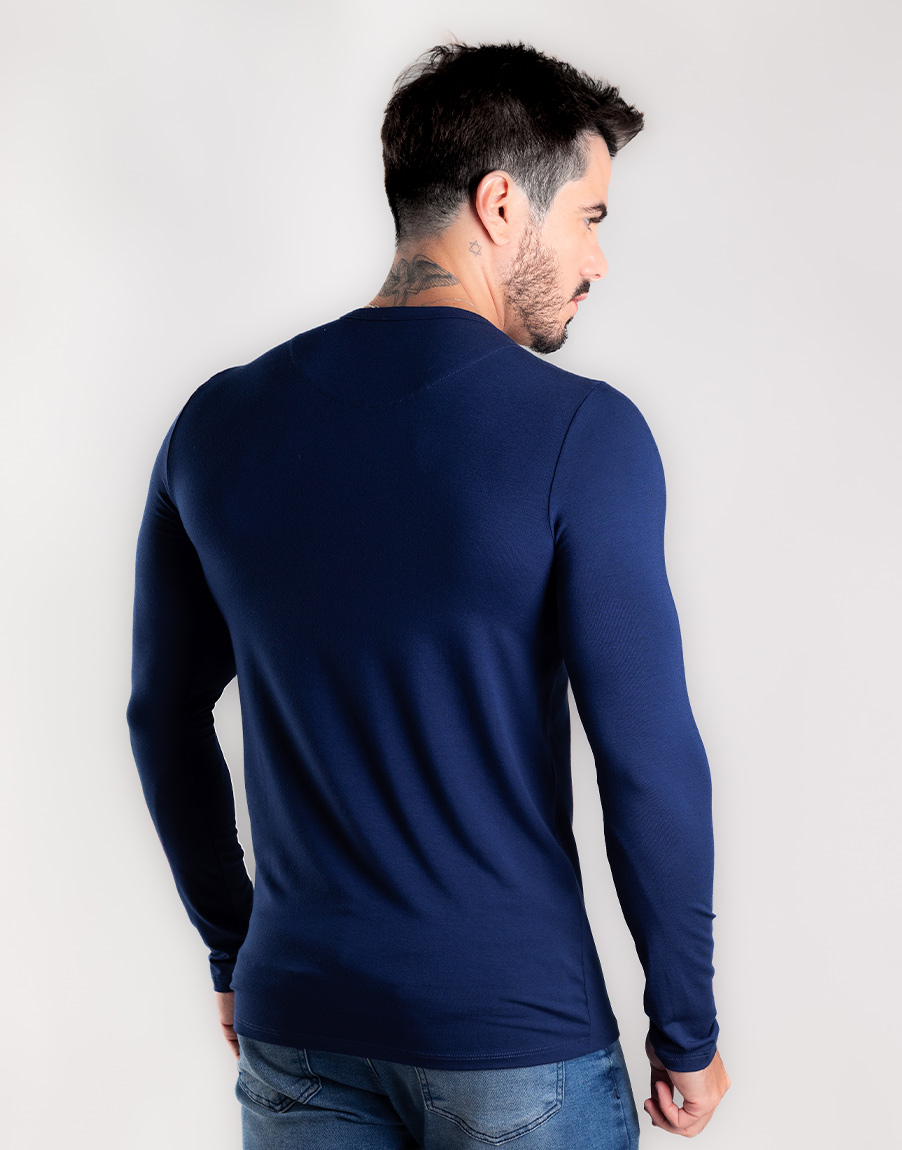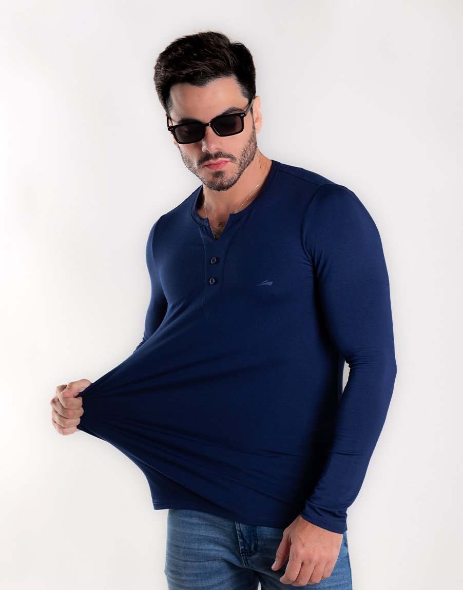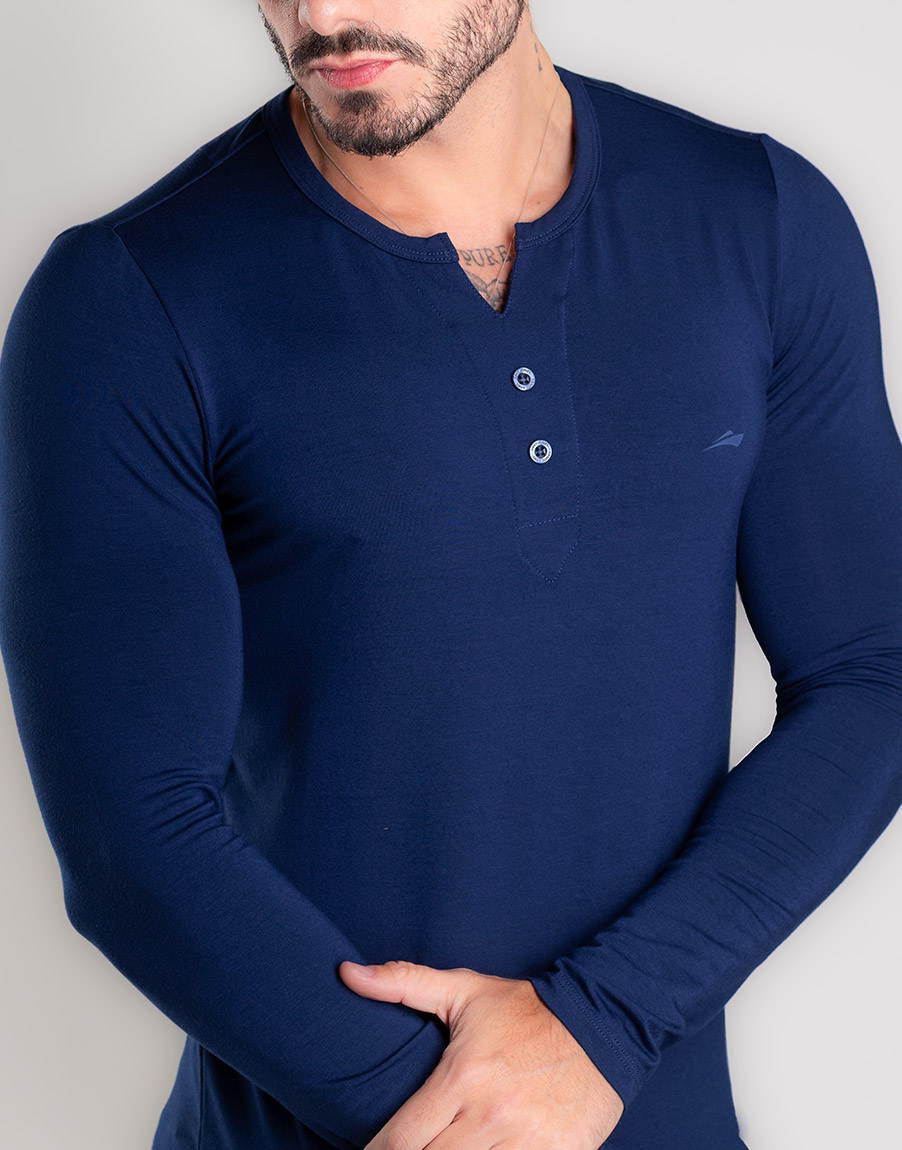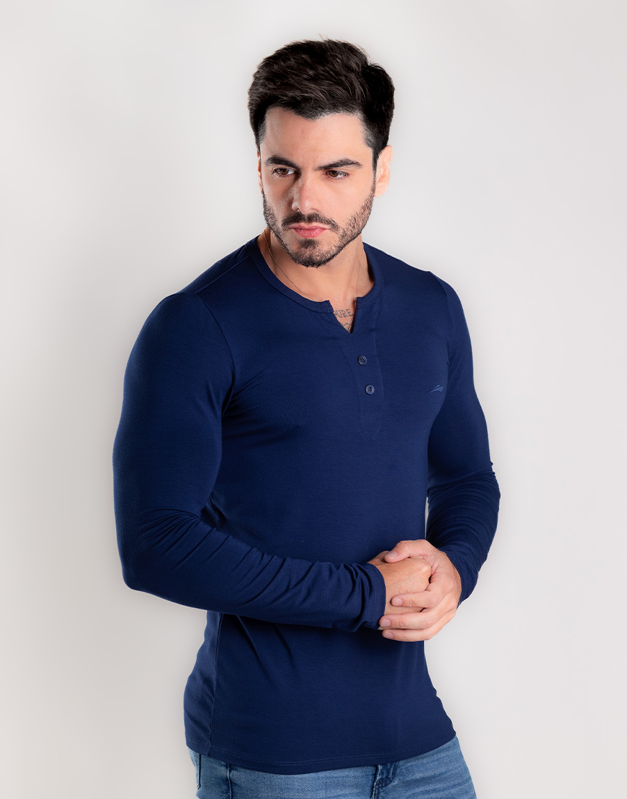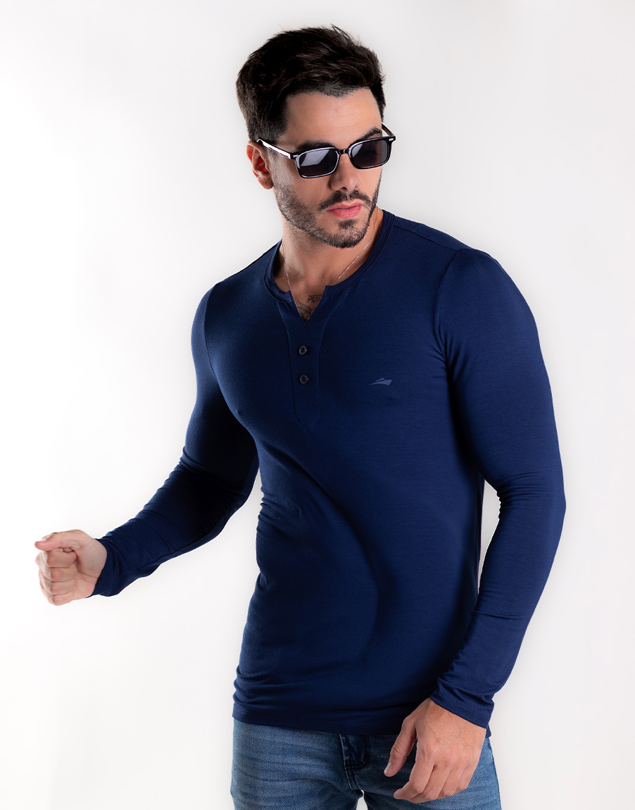 Henley Slim Fit Masculina Alta Elasticidade – Cor Azul Marinho