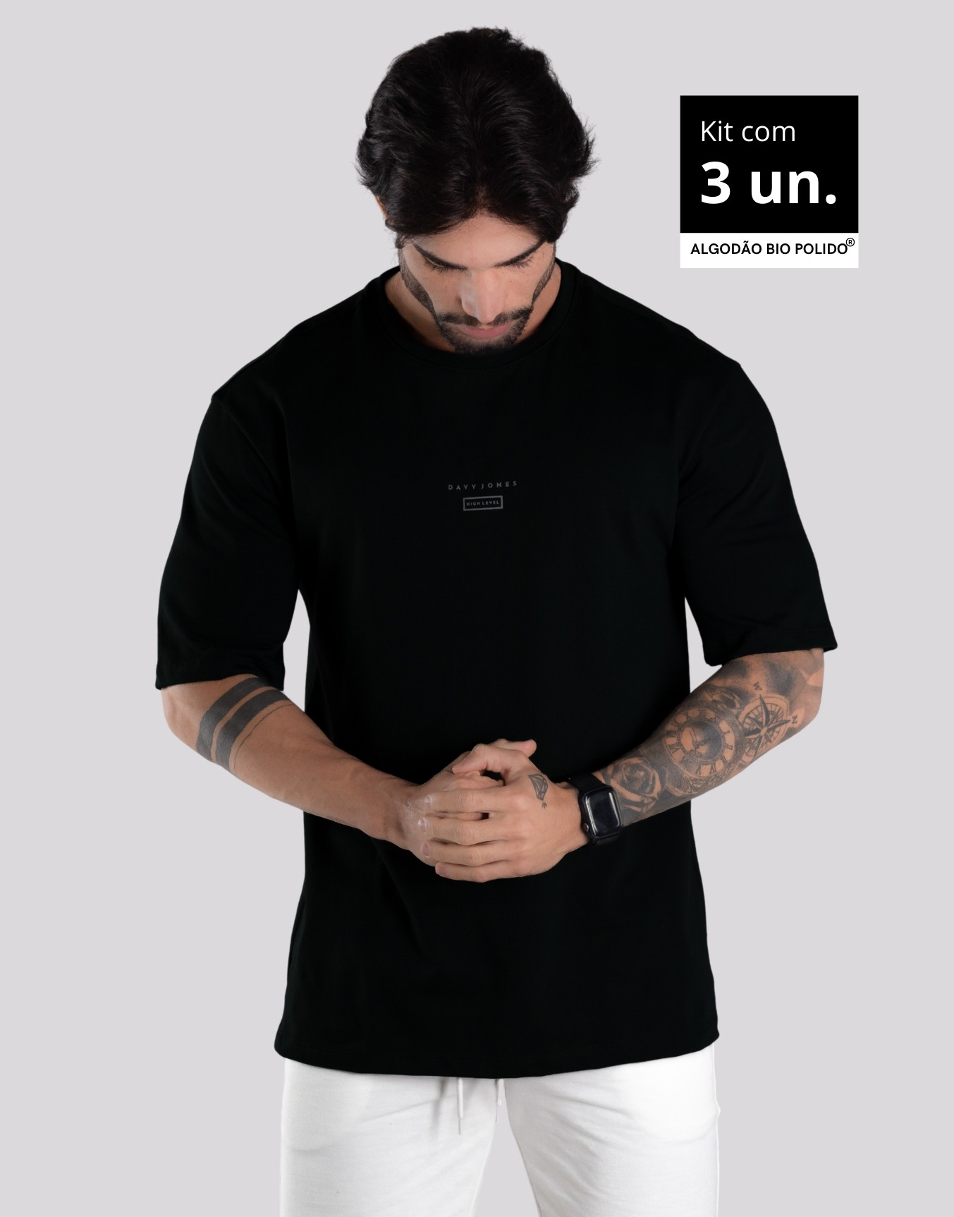 Kit 3 Camisetas Oversized Masculina em Malha Estruturada Davy Jones