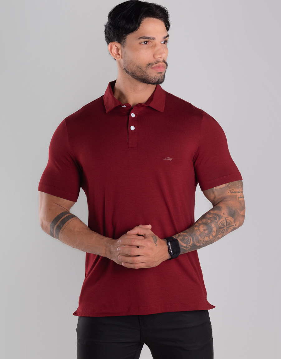 Henley Slim Fit Masculina Alta Elasticidade – Cor Marsala