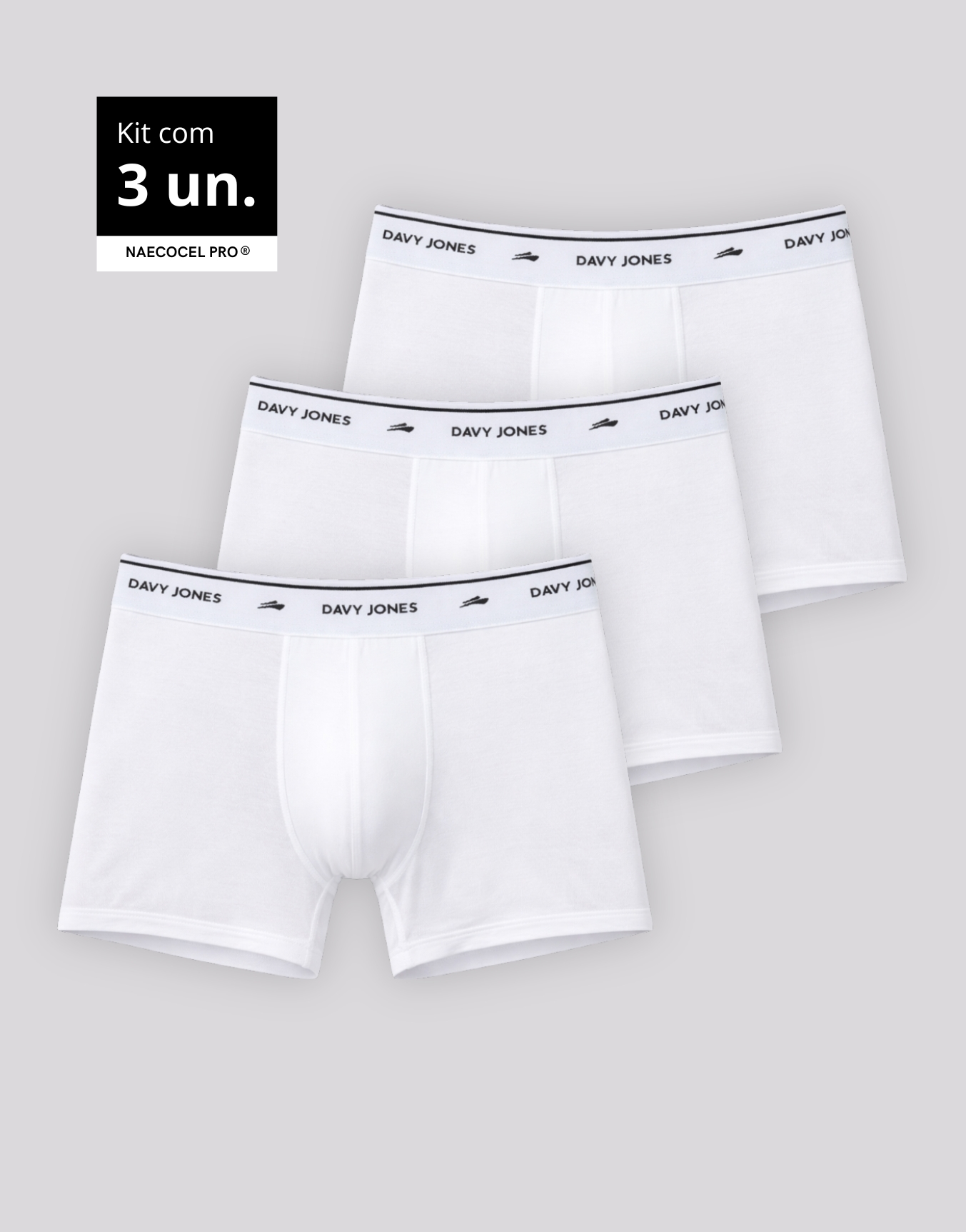 Kit 3 Cuecas Boxer Masculina Naecocel Não Enrola – Cor Branca
