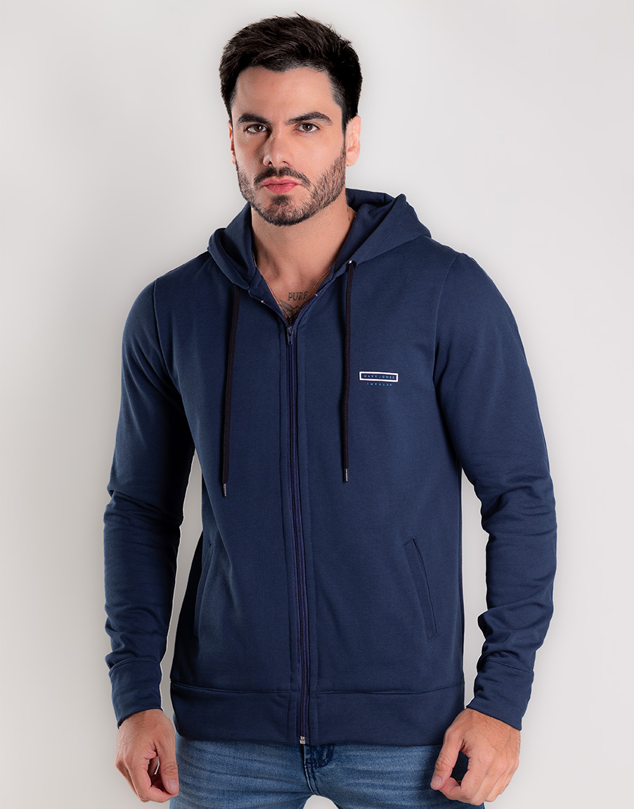 Moletom Masculino com Capuz e Zíper Conforto Premium – Cor Azul