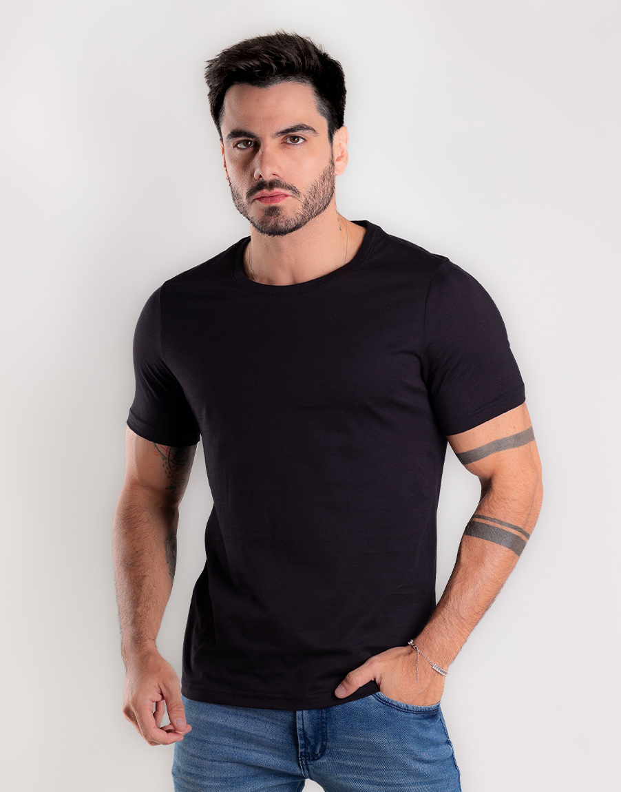 Camiseta Masculina Em Algodão Pima Fio 40.1 Com Elastano